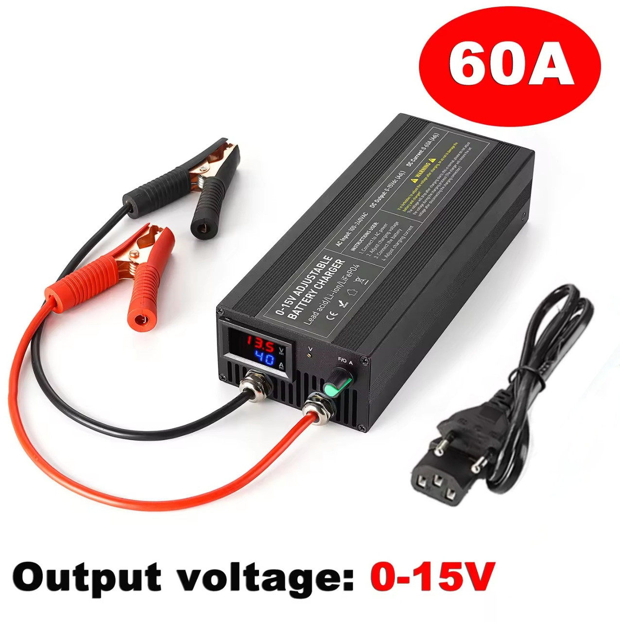 Потужний зарядний пристрій 0-15V 0-60A заряджання для акумуляторів LiFePo4, Li-ion, Lead acid, Gel.
